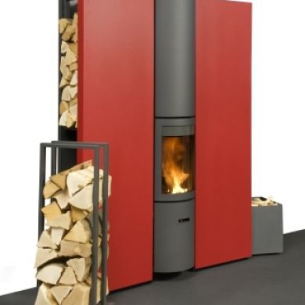 Stufa a legna STUV mod. 30 Compact + rivestimento e scaffali porta legna